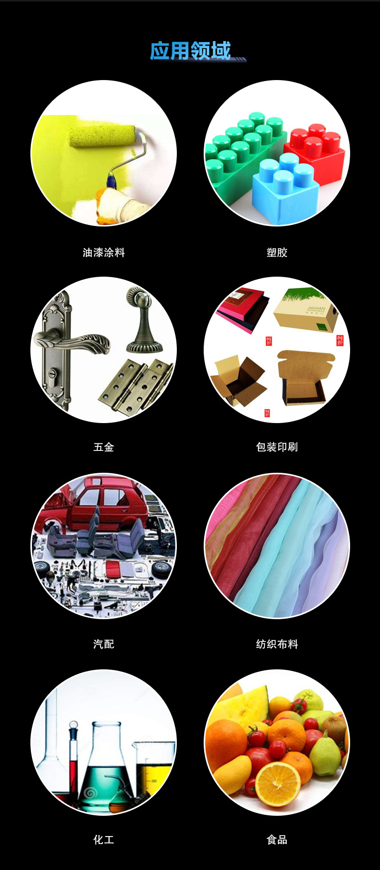 色度指標 | WI(ASTM E313-00,ASTM E313-73,CIE/ISO,AATCC,Hunter,Taube,Berger Stensby),YI(ASTMD1925,ASTM E313-00, ASTM E313-73),Tint(ASTM E313-00),同色異譜指數Milm,沾色牢度,變色牢度,ISO亮度,R457,A密度,T密度,E密度, M密度,ApHA/Hazen/Pt-Co(鉑鈷指數)、Gardner(加德納指數),Saybolt(塞伯特指數),Astm color,霧度總透過率, 遮蓋力,力份,強度 |