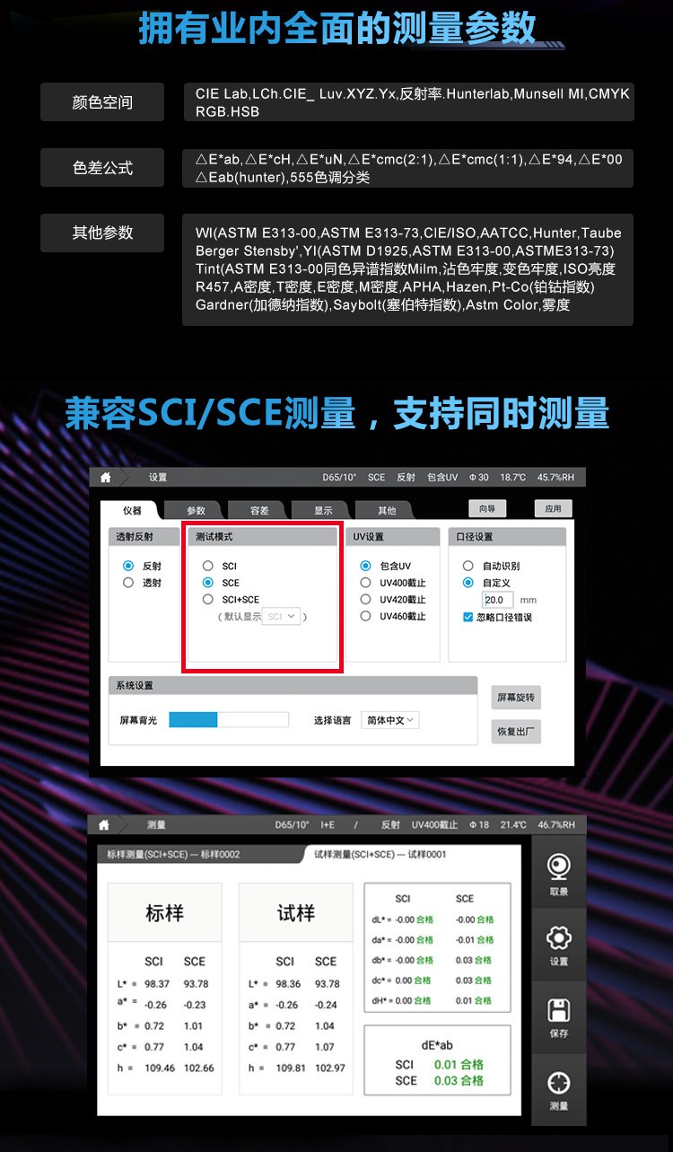 測量顏色準確穩定、存儲容量大、PC端強大擴展功能,用于實驗室顏色分析