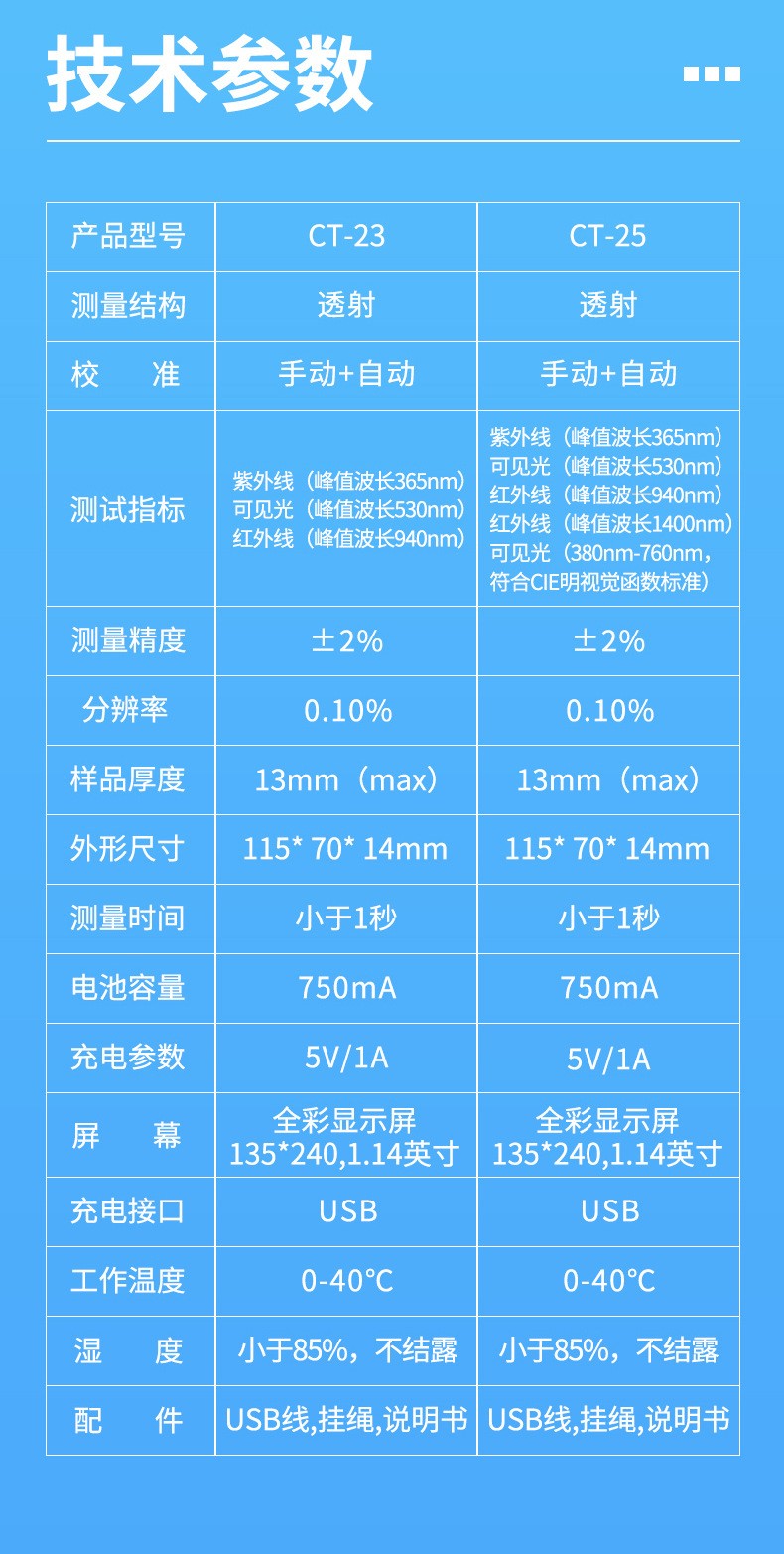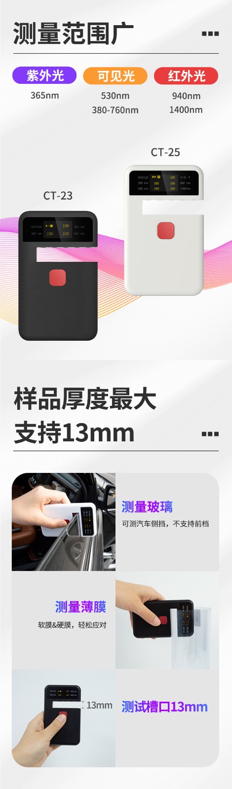 CT-23/25手持透光率儀鋼化玻璃薄膜塑料導(dǎo)光板半透明透過率檢測
